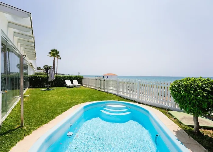 Az Estepona strand övezetében található tengerparti Ocean Front Villa with Private Pool Estepona belső udvart és kertet kínál a vendégeknek.
